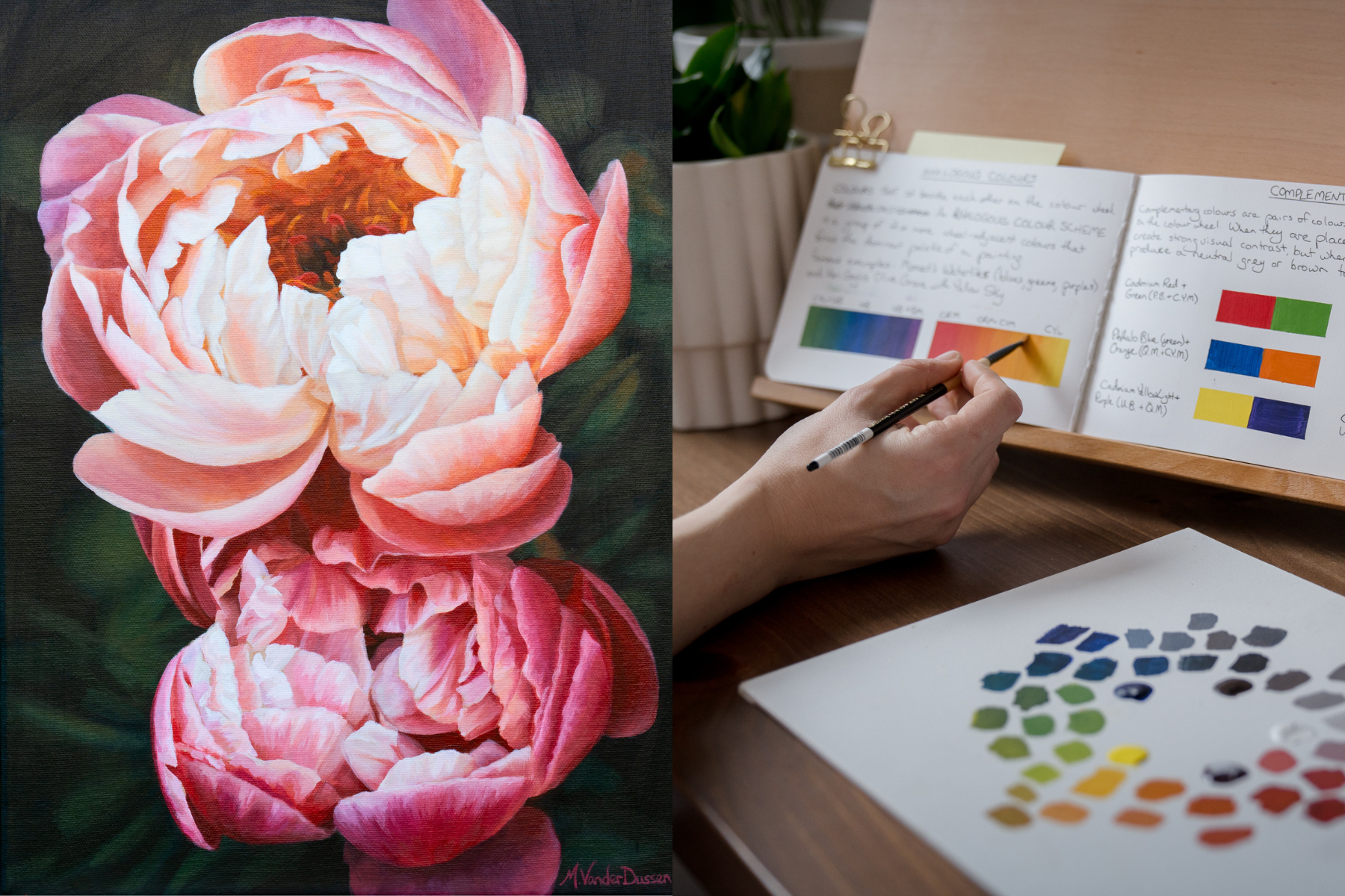 In my lessons, I break down complex techniques into practical, easy-to-follow steps using acrylic, oil, and sketchbooks. Through my YouTube tutorials and structured courses, I guide you in developing strong foundations, painting with intention, and progressing at your own pace.